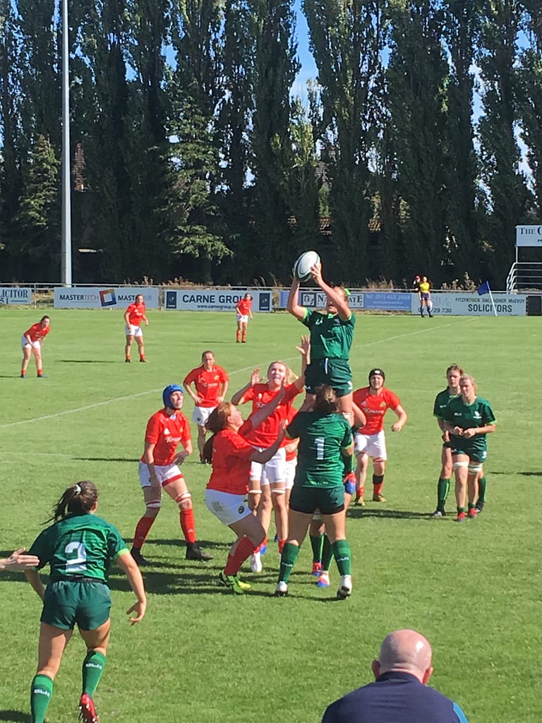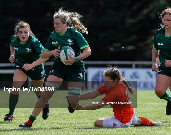 From the restart Connacht got themselves right back into the match, regaining possession and moving the ball swiftly and expertly from one side of the field to the other. The plan appeared to be to get the ball into the hands of their electric back three players, the aforementioned Parsons (who is still only 17), her former U18 championship winning colleague Aoibheann Reilly at fullback and former Ireland international, and assistant coach, Ali Miller on the opposite wing.